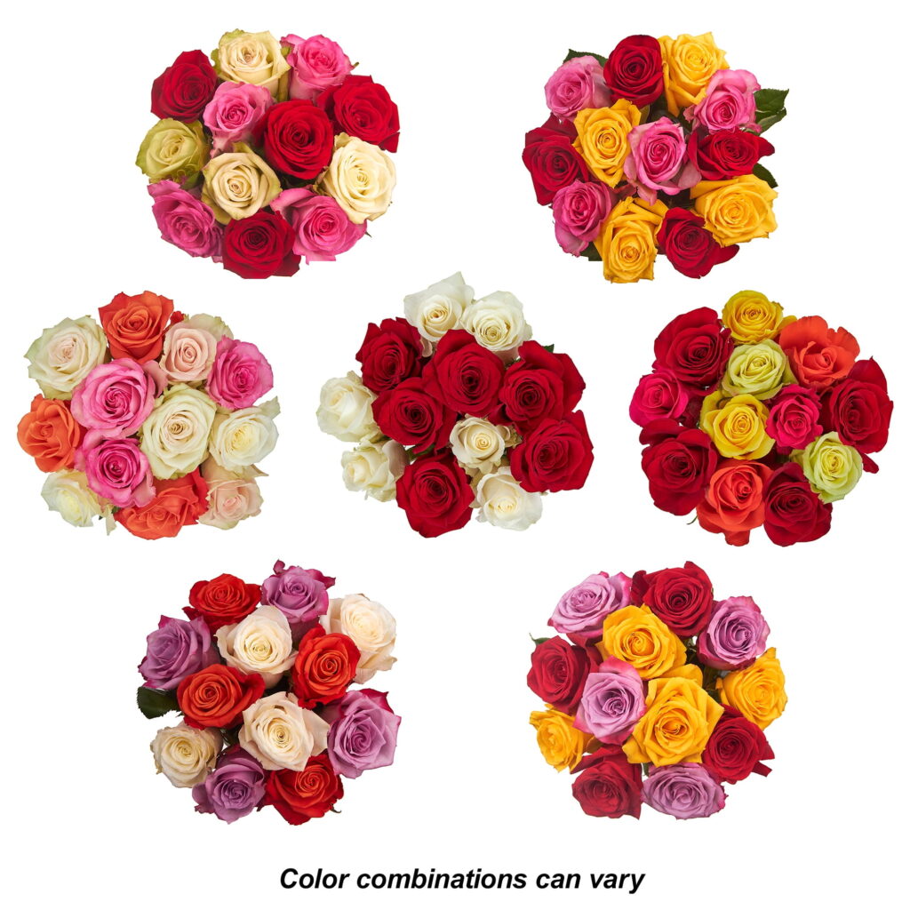 Fresh-Cut Dozen Roses, 12 Stems Assorted Rainbow Colors, Colors Vary
